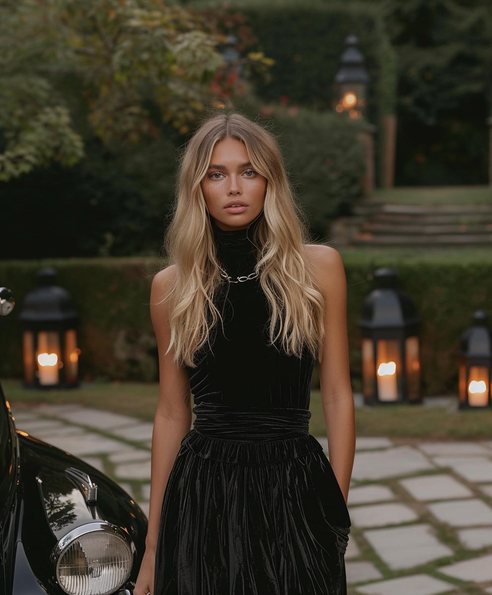 The Joyce Top is where sculptural elegance meets modern edge. Crafted from luxe velvet, this sleeveless halter design features a softly draped high neckline that elongates the silhouette and draws attention to the shoulders. Its close-to-the-body cut creates a sleek, second-skin effect that’s both refined and effortlessly bold.