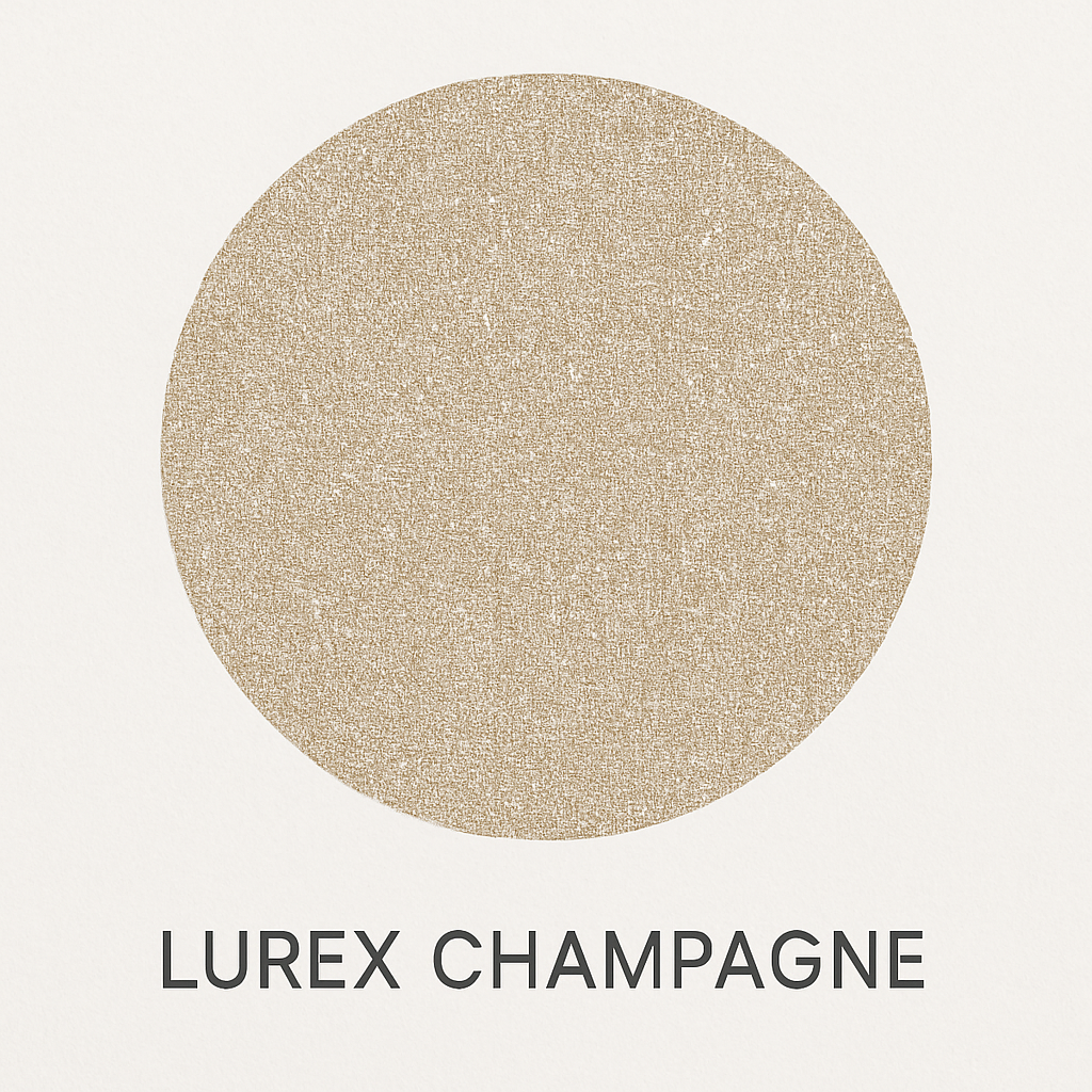 Fabric:Metallic Lurex blend. Lined. Available in Champagne